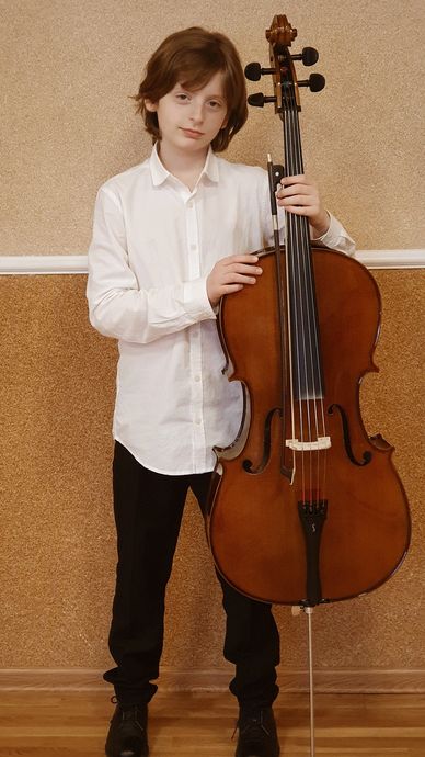 Gleb Arseniev-Kyrylych was born in 2009 in Kiev, Ukraine. He started to play cello at the age of nine. Now Gleb attends 3d form in Cello class at Brovary Music School. Gleb took part in Odesa Music Olymp 2020 competition, where he got Diploma of Laureate III degree in strings category I. Also he took part in International Charity Festival “Inna-Brovary” 2019 and 2020 years, where he got Diplomas of Laureate of 1st and 2nd degrees. He also plays in Music School Chamber Orchestra in Brovary.