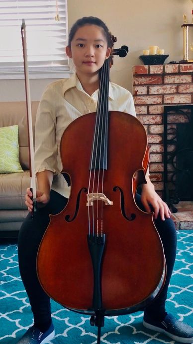 Eiline began her cello studies at the age of five and has given numerous public performances; she made her first debut recital at the age of seven at Carnegie Hall in New York, and had her first appearance as a soloist with orchestra at the age of ten with Southern California Philharmonic. In October 2018, Eiline held her first solo cello concert at Winifred Smith Hall. Eiline was granted scholarship to study with Laurence Lesser, Michel Strauss and Amit Peled at Orford Music Academy and performed at the Rising Stars Concert in Orford, Canada. Eiline was chosen to participate the 2020 Piatigorsky International Cello Festival, for the Young Cellists Workshop and the Mass Cello Ensemble at Walt Disney Concert Hall. She was a finalist for From The Top, the NPR radio show at age eleven and also featured at the radio Laguna Beach FM in 2020. Eiline has been a winner and earned recognition and scholarship in a great many competitions. Currently, Eiline is studying with Ms. Sarah Koo at the Colburn School. She also complemented her studies by taking lessons and master classes with renowned musicians, including Laurence Lesser, Hans Jensen, Michel Strauss, Xenia Jankovic, Claudio Bohorquez, Adrian Brendel, Steven Doane, Amit Peled, Darrett Adkins, and Yegor Dyachkov.